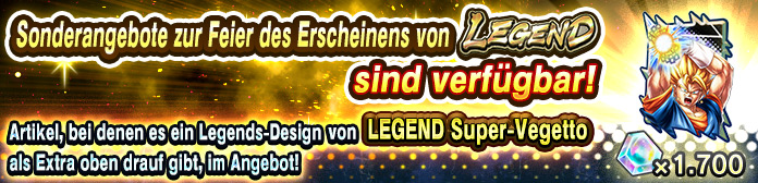Legendäre Produkte im LEGEND-Charakter-Design sind jetzt erhältlich!Beim Kauf von Zeitkristallen gibt es als Bonus jeweils Legends-Designs, Hintergründe oder einen Titel und eine Nachricht von LEGEND "Super-Vegetto (DBL92-01L)" dazu!