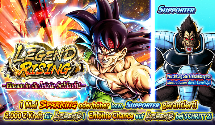 Wenn ihr den LEGEND-Charakter Bardock noch nicht habt, könnt ihr bei der 500. Ziehung die entsprechende Z-Kraft garantiert erhalten!Diese Gelegenheit gibt es nur im ersten Durchlauf des Events. Also lasst sie euch nicht entgehen!